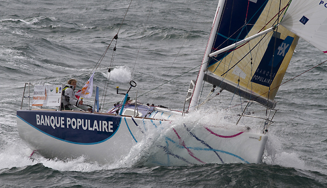 Fin prête pour attaquer une nouvelle saison, Jeanne Grégoire, skipper du Figaro Banque Populaire a assisté ce jeudi matin à la mise à l’eau de son bateau devant la base technique à Lorient. Depuis novembre 2011, le Figaro se faisait inspecter sous tous les angles et réparer par les mains expertes des hommes du Team Banque Populaire. Totalement remis à neuf il reprendra la mer dès ce vendredi, mettant le cap sur Port La Forêt où les stages d’entraînements intensifs ne tarderont pas à débuter. La saison commencera par la Solo Massif Marine qui se déroulera du 15 au 18 mars aux Sables d’Olonne. Course qui remettra « dans le bain » tous les figaristes avant de se lancer, le 21 avril, sur la Transat AG2R entre Concarneau et Saint Barth.