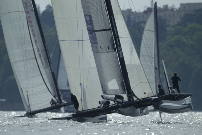 La deuxième édition du Grand Prix Les Ambassadeurs est organisée par la Société Nautique de Genève du 4 au 6 mai 2012. Trois jours durant, les équipes engagées dans le Vulcain Trophy, s’affrontent sur des parcours « sprint » dans la rade de Genève. 18 manches de 20 à 30 minutes sont prévues. En 2011, la jeune équipe CER Carrefour Prévention issue du Centre d’Entraînement à la Régate de Genève avait créé la surprise en remportant la première étape du circuit devant Alinghi et Artemis Racing. La flotte a effectué ses premiers entraînements le week-end dernier à Versoix. Neige sur les sommets, températures hivernales, conditions musclées, vent soutenu avec des rafales à 35 nœuds, de quoi se mettre tout de suite dans le bain…