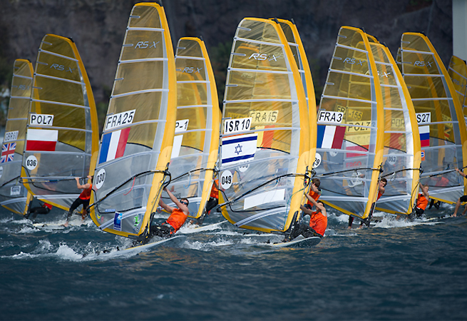 Après deux journées sans vent contraignant les organisateurs à annuler les courses, hier la brise était de retour à Funchal pour le Championnat d’Europe de RS:X, mais elle était très faible et variable. Certains des favoris éprouvaient de vraies difficultés dans ces conditions légères. Le Polonais Przemyslaw Miarczynski a notamment souffert dans cette faible brise, tandis que son compatriote Piotr Myszka prenait de bons départs avant de céder son avantage vers la fin du parcours. Une journée très physique pour les athlètes qui avaient besoin de leurs muscles pour avancer. Une journée marquée par les bons résultats du Grec, Byron Kokkalanis, qui partagent la première place du classement provisoire avec Miarcsynski sur 34 pts. C’est Myszka, qui complète le podium provisoire sur 43 pts. Le Français Julien Bontemps est actuellement en cinquième place. Du côté des femmes, l’Espagnole Marina Alabau cavale en tête du classement avec seulement 13 points devant l’Israélienne Maayan Davidovich (37 pts) et la Finlandaise Tuuli Petaja (39 pts).