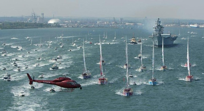Le porte avion de la Royal Navy, Illustrious et une flotte d’une centaine de bateaux spectateurs ont assisté au départ des dix clippers qui ont quitté Southampton hier pour faire le tour du monde. La Clipper Round the Worlkd Race est un tour du monde avec escales effectuée par des marins amateurs menés par des skippers professionnels. Certains seront présents à bord des 68 pieds pour tout le tour, tandis que d’autres n’embarquent que pour une ou deux étapes selon leur disponibilité.