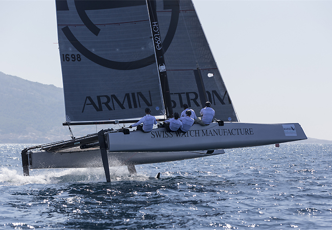 25 nœuds de Mistral pour le premier jour de compétition au Stade nautique du Roucas Blanc, qui a vu s’affronter pour la première fois en Méditerranée, les GC32 du circuit The Great Cup. Sur les quatre bateaux au départ, seuls deux terminent les deux manches du jour : le bateau suisse Armin Strong de Flavio Mazzari arrive devant celui du Hollandais Mischa Heemskerk sur Magic Marine, après des bords âprement négociés. Lancés à près de 30 nœuds et malgré une voilure réduite, les catamarans des Français Sébastien Rogues sur GDF Suez et Laurent Lenne sur SPAX Solutions ont dû jeter l’éponge avant la fin de la première manche : une rafale, le bateau s’envole à presque 40 nœuds et prend une mauvaise vague. Bilan : un retour à terre prématuré pour évacuer un blessé et l’abandon de la manche en cours.