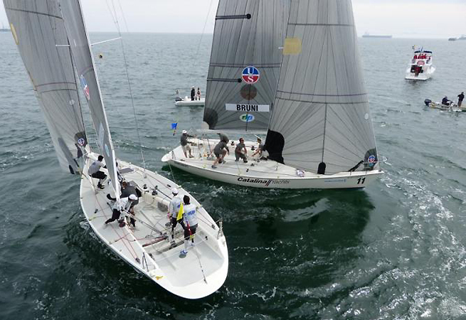 Ian Williams est en tête du classement provisoire de la Congressional Cup qui a attiré les ténors du match racing à Long Beach en Californie. Il a signé sept victoires dans ses neuf duels, soit un point de plus que Francesco Bruni, Mathieu Richard et Taylor Canfield. Le deuxième round robin se disputera aujourd’hui et demain avant les demi-finales programmées ce dimanche. Le skipper des îles Vierges, Taylor Canfield qui a remporté le WMRT 2013 peut être satisfait de sa journée ayant battu le Britannique, et n’a perdu qu’une seule rencontre hier lors de son duel face à Mathieu Richard. Le Français a certes marqué trois points dans ses quatre duels de la journée, mais n’était pas satisfait de ses départs hier. Le moment le plus curieux de cette journée de jeudi a été une pénalité infligée sur Johnie Berntsson pendant un duel entre Bruni et Keith Swinton. Les deux skippers étaient immobilisés au départ et le Suédois qui préparait son départ dans le match suivant s’était intercalé entre les deux perturbant le départ.