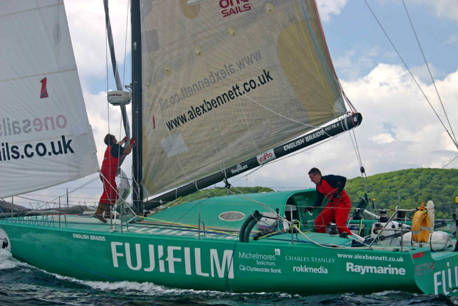 Les premières arrivées du tour des îles Britanniques avec escale sont attendues la nuit prochaine. Ce midi, le Class40 SunGard Front Arena mené par Marco Nannini et Paul Peggs progresse au sud de l’île de Wight à une centaine de milles de l’arrivée. Le duo est suivi par Alex Bennett et Malcolm Dickinson sur Fujifilm, qui n’ont qu’une dizaine de milles de retard sur les leaders. Derrière, le duel pour la troisième place se poursuit entre les Norvégiens sur Solo et les Sud-Africains sur Phesheya Racing. Selon les dernières prévisions, le vainqueur est attendu peu après minuit à Plymouth.