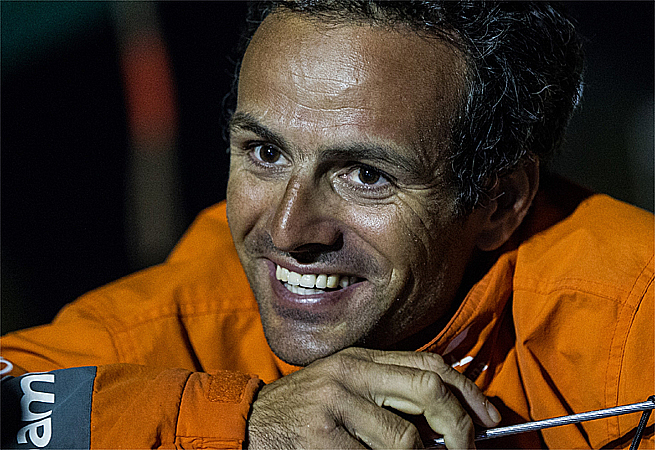 « Journée de reprise avec 25 nœuds de vent. Nous n’avons pas l’habitude de travailler dans ces conditions avec cet équipage là. Nous faisons une manche de 6 et une manche de 2, le bilan est positif. Nous n’avons pas l’impression de régresser lors des parcours techniques. Nous sommes contents de la journée. »