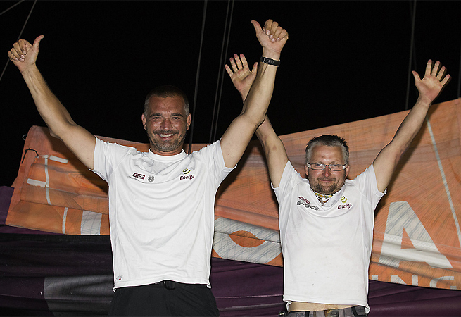 Zbigniew Gutkowski et Maciej Marczewski ont franchi la ligne d’arrivée de la Transat Jacques Vabre ce mercredi à 23h 47min 17s à Itajaí, au Brésil. Leur temps de course : 20j 10h 47min 17s. Leur vitesse moyenne sur le parcours théorique de 5 450 milles depuis Le Havre a été de 11 nœuds. Ils ont parcouru 6003 milles sur l’eau à la vitesse moyenne de 12,23 nœuds. L’écart au premier, PRB (Vincent Riou/Jean Le Cam) est de 3 jours 10h 5min 30s.