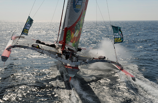 « C’est sûr qu’au départ de cette 10e édition, il y a du monde et du beau. Pour commencer, il y a Loïck Peyron (Maxi Solo Banque Populaire VII) qui débarque un peu au dernier moment pour remplacer Armel Le Cleac’h, blessé à la main, et que l’on sait tous capable de faire des étincelles. Il y a aussi Thomas Coville (Sodebo Ultim’), remonté comme une pendule, Yann Guichard (Spindrift 2) dont on ne connait pas exactement les capacités sur son immense bateau mais dont on peut être à peu près certain que s’il n’y a pas trop de manoeuvres à effectuer et que les conditions sont soutenues, il va être un concurrent très rapide. Evidemment, il y a aussi Francis Joyon( Idec Sport). Quelqu’un comme Sébastien Josse (Edmond de Rothschild) n’est pas non plus à sous-estimer car il connaît bien sa monture et ce qui a été fait sur sa machine me parait très pertinent. Bref, il y a du monde au portillon et bien malin est celui qui se risquerait à faire des pronostiques. D’ailleurs, si on connaissait le tiercé en avance, ce ne serait nettement moins drôle ! »