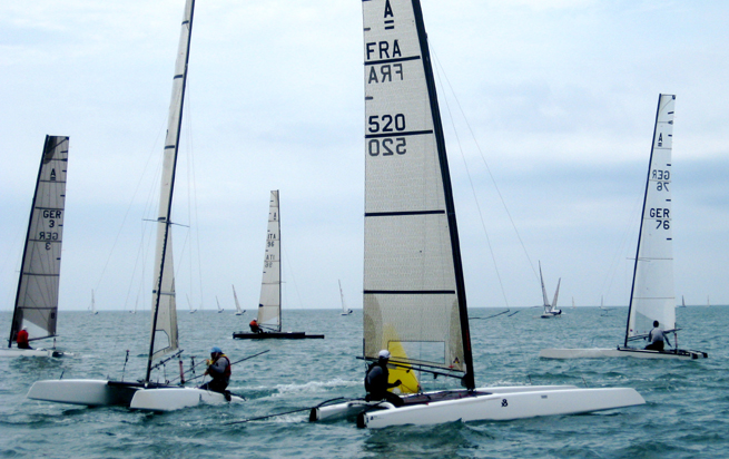 La baie d’Aigues Mortes est rarement le théâtre de phénomènes météo comme ceux vécues ces 4 derniers jours pendant le National classe "A" qui réunissait les plus grosses pointures de la catégorie avec des participants venus de Grande Bretagne, d’Allemagne, de Suisse, de Belgique, d’Espagne, d’Italie et d’Irlande. Parmi les stars, on relevait la présence de Loïc Peyron totalement néophyte sur ce bateau hautement sportif et technique. Quand on sait qu’il a découvert ce support en Novembre dernier juste avant de prendre la route pour son tour du monde victorieux avec Jean Pierre Dick et qu’il n’a participé qu’à deux régates avant ce National on mesure la classe de ce champion d’exception qui termine 5ème Français devant nombre de pratiquants chevronnés.