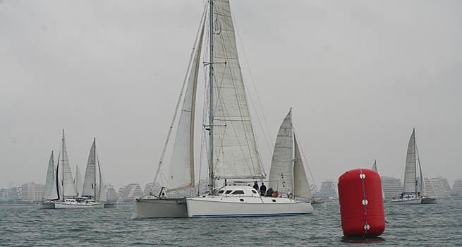 Le lendemain fut consacré à un long bord de largue vers la Grande Motte, laissant le choix aux catas entre miser sur le vent de terre et tirer plus au large. Le vent était au rendez-vous sur une bonne partie du parcours, mais se faisant désirer sur la fin, la course fut écourtée.