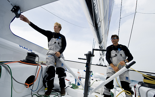 François Gabart : « Une chose est sûre, c’est que le 60 pieds MACIF correspond bien à ce que l’on attendait. J’étais un peu tendu avant cette première navigation : ce n’est quand même pas rien de passer du Figaro à un 60 pieds, quand tu es aux commandes. Mais, en fait, je me suis senti à l’aise très rapidement. D’autant qu’avec Sébastien, on a tout de suite trouvé nos marques. On a pu valider beaucoup de choses, on a beaucoup échangé, on a testé plein de configurations de navigation, c’était vraiment une qualification très riche.»