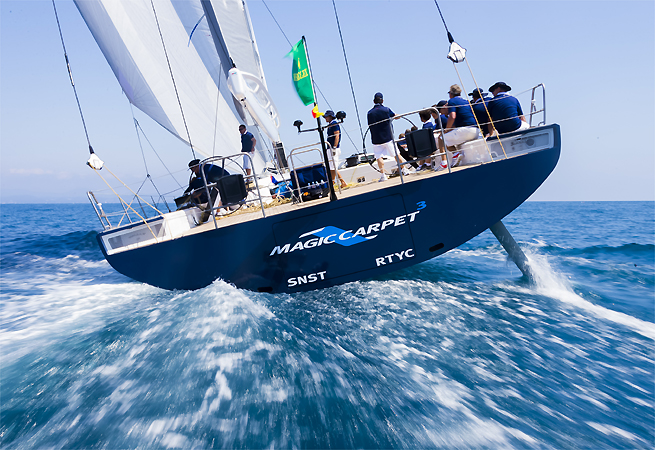 Sans surprise, Magic Capret3 s’est rapidement emparé du commandement pour ne plus le lâcher. Tout au long du parcours Lindsay Owen Jones a démontré que son tout nouveau maxi de 100 pieds disposait d’un incroyable potentiel de vitesse, se permettant parfois de naviguer deux fois plus vite que le vent. Après 2h et 5min de course, Magic Carpet3 franchissait la ligne d’arrivée en première position suivi, 4 minutes plus tard, par un concurrent dont la prestation est tout aussi stupéfiante, le nouveau mini maxi Alegre 3 d’Andres Soriano. Derrière ce duo tout juste sorti des chantiers, Stig, Shockwave et Bella Mente complètent le top 5.