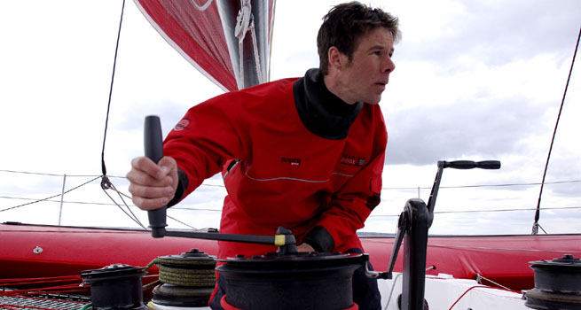 « Hier après-midi, bord sous gennaker rapide avec des grains jusqu’a 30 noeuds. Il faut aller vite et naviguer bas pour rester dans la zone de vent fort. En début de nuit, avec un vent toujours de 25-30 nœuds, 30 noeuds sous pilote, puis en fin de nuit, dernier empannage vers la Guadeloupe. Maintenant route directe rapide vers la tête. On verra bientôt le résultat entre l’option sud de région Guadeloupe et Gitana 12 et mon option nord. Ça va vite, 25 noeuds tout le temps. Faire attention au bateau. A +. Antoine ».