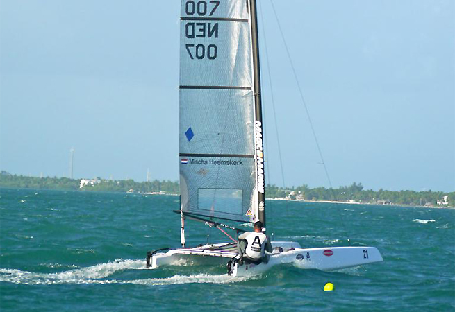 Les conditions étaient éprouvantes cette semaine en Floride pour les participants au Championnat du Monde A-Class avec un vent très fort. Au terme de cinq manches, c’est le Néerlandais, Mischa Heemskerk qui triomphe cette année, grâce à sa régularité (deux victoires, deux places de deuxième et une troisième place). L’Ouragan Sandy a menacé cette épreuve car centré au large de Cuba hier, mais le Directeur des Courses a réussi à lancer deux manches déterminantes avant le renforcement du vent.