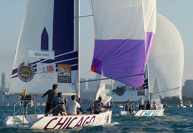 La brise s’est renforcée ce jeudi à Chicago pour les participants à l’étape nord-américaine du World Match Racing Tour. Les premières places pour les quarts de finale ont été attribuées à Taylor Canfield, Ian Williams, Pierre Antoine Morvan et Phil Robertson. Les billets pour les quatre dernières places seront distribués suite à la phase de repêchage.
