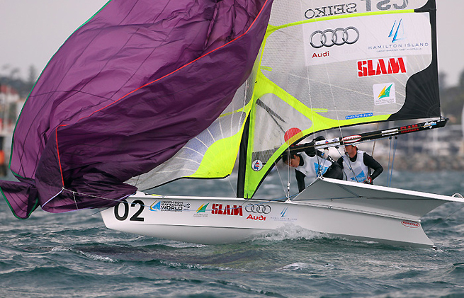 Le tandem australien, Outteridge et Jensen ont brillé au Championnat du Monde de 49er à Perth ce samedi. Ils ont désormais 17 points d’avance sur les frères danois Toft Nielsen avant la course aux médailles qui se disputera ce dimanche. Les Autrichiens, Nico Delle Karth et Nikolaus Resch ont fait un retour remarquable et remontent de la 22ème place à la septième place en signant deux victoires ce samedi. Déception en revanche pour les Britanniques, Pink et Peacock, qui dominaient l’épreuve jusqu’ici. Avec une 24ème et puis une 23ème place ce samedi, ils glissent à la troisième place au classement provisoire. Quant aux Français, il y a eu une belle bagarre entre Yann Rocherieux / Mathieu Frei et Noe Delpech / Julien d’Ortoli. Le premier tandem signe une victoire et une seconde place aujourd’hui, tandis que le second est arrivé deuxième et troisième. Hélas, ces bons résultats arrivent trop tard et les trois équipes françaises en lice n’arrivent pas à atteindre le Top 10 et la course aux médailles.