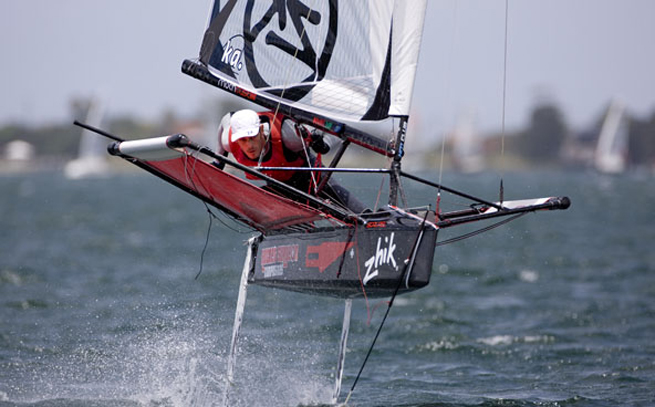 Nathan Outteridge continue de briller en Australie où se dispute le championnat du Monde de Moth. Il termine les qualifications au sommet du classement devant le Néo-Zélandais Peter Burling, qui après un excellent début avec une pointe à 27,7 noeuds, s’est légèrement blessé dans la dernière course lorsque son foil est tombé sur son dos, permettant à Joe Turner de remporter la course. Scott Babbage doit se contenter de la quatrième place arrivant toujours derrière son compatriote Outterridge.