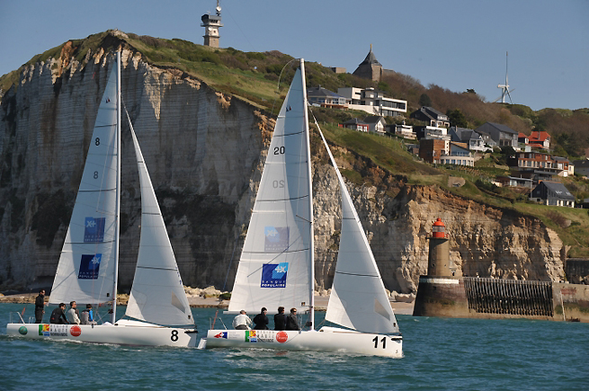 Le championnat de France Promotion Match Racing Open a ouvert ses portes hier accueillant les meilleurs français du circuit Match Racing. Cette journée d’ouverture du Championnat de France a permi aux coureurs, séparés en deux groupes, de s’entraîner dans la baie de Fécamp. Cet évènement organisé par la Fédération Française de Voile et la Ligue de Voile Haute Normandie réunit 12 équipages venant de toutes les façades (Manche, Atlantique, Méditerrannée).