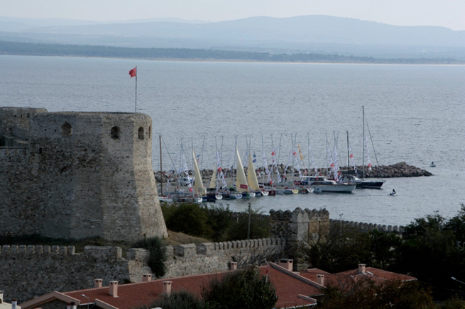 C’est un peu plus tôt que prévu que la flotte de la Cap Istanbul a quitté Bozcaada, la faute au vent de sud-est qui menaçait de malmener les bateaux au mouillage. C’est donc en pleine nuit que le convoi a rejoint les Dardanelles pour embouquer le détroit de nuit. Au pied des remparts de Troie, la flottille accompagne la course des cargos remontant vers la mer de Marmara et les rives du Bosphore.