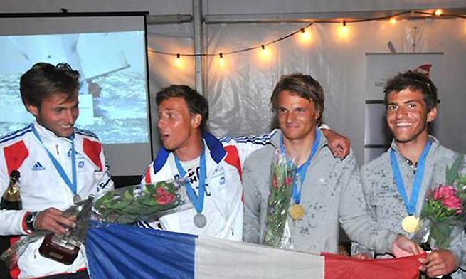 Les Français ont brillé sur le Championnat d’Europe Jeunes de 470 qui se déroulait à Nieuwpoort en Belgique dans des conditions météorologiques très variables et avec beaucoup de courant. Avec pas moins de six équipages tricolores dans les quinze premiers, dont deux sur les deux premières marches du podium, et la récente victoire de Pierre Leboucher et Vincent Garos au Test Event, le 470 Français confirme sa bonne santé. Si l’entraîneur des 470 Jeunes, Philippe Michel, se dit très satisfait du parcours de l’ensemble des athlètes sur ce championnat, le prix d’excellence est attribué au duo Kévin Peponnet / Julien Lebrun qui décroche le titre de Champion d’Europe Jeunes de 470. Les vice-champions du monde 2011 ont parfaitement maîtrisé leur sujet et rendent une copie quasi-parfaite puisque leur plus mauvaise note sur l’ensemble de ce championnat est une manche de 6. Gabriel Skoczek et Achille Nebout sortent également de cette épreuve avec les honneurs. Second au classement général, l’équipage a su faire preuve de régularité et a enchaîné les bons résultats dès le début de la compétition. Victimes d’un dessalage le deuxième jour, ils accusaient à la veille de la medal race un retard de seulement 13 points sur leurs compatriotes leaders. Avec pas moins de 7 victoires de manches sur onze courues (3 pour Kévin et Julien, 4 pour Gabriel et Achille), ces deux équipages français ont véritablement dominé ce Championnat, occupant à tour de rôle les deux premières places du tableau.