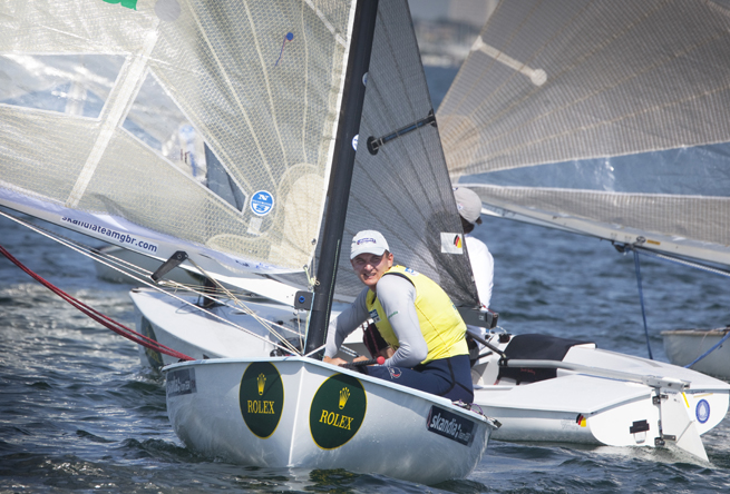 En Finn, Giles Scott n’affiche plus une série de résultats parfaits, mais domine toujours le classement provisoire. Son adversaire britannique Ben Ainslie est tombé à la 7ème place à 38 points du leader ayant été disqualifié dans la sixième course de la semaine.