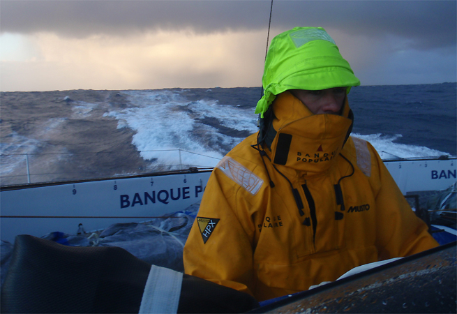 En ce dimanche 25 décembre, Loïck Peyron et les 13 hommes du bord du Maxi Banque Populaire V sont désormais à 700 milles au nord de la Géorgie du Sud et à 950 milles au sud de l’Argentine. Positionnés par 42° Sud, ils font route au nord, tandis que le vent est un peu tombé.