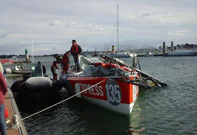 Ce samedi, alors qu’il naviguait à bord de son Class40 L’Express – Trépia, Pierre-Yves Lautrou a été victime d’un démâtage. L’avarie s’est produite aux alentours de 13 heures, à sept milles dans l’Est de l’île de Groix. « Nous allons tout mettre en œuvre pour être au départ de la Route du Rhum. Le fait est que j’ai un peu l’habitude des situations de crises avant le départ du Rhum », a précisé le navigateur, faisant référence à son abordage par un chalutier survenu en 2010 alors qu’il réalisait le convoyage de son Class40 jusqu’à la cité Corsaire. « Cette fois, nous allons surmonter cette avarie mais j’avoue que c’est une vraie frustration car ma préparation était, jusqu’alors, bien millimétrée. A un moins du départ, il est évident que je ne serais bien passé de ce type de problème », a conclu le skipper de L’Express – Trépia
