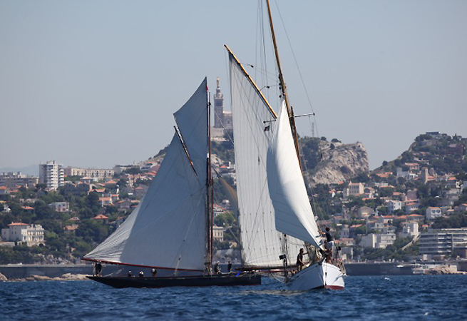 Première journée d’été à Marseille, première journée de régates des Voiles du Vieux-Port également ! Le départ est lancé ! Pétole… Une fois l’axe du Frioul passé, le vent s’accélère et les bateaux aussi. De retour en rade sud pour les derniers bords, le vent faiblit de nouveau. A l’occasion de cette première journée de régate, Yves Laurent, le propriétaire de Nin, a pris un bon bain. “Je me suis embrouillé les pieds dans l’écoute de Grand Voile, racontait-il à quai, avant de passer par-dessus bord“. Pas de casse pour le bonhomme, juste un bon bain bien frais. Le Côte Aurique qui fêtes ses 100 ans, en 2013 a donc terminé sa journée avant tout le monde.