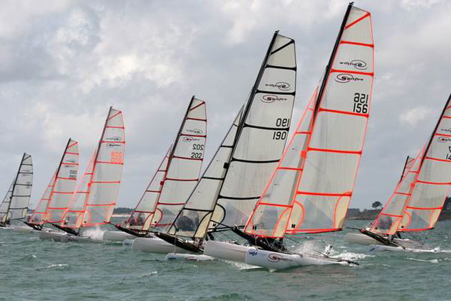 Le premier jour de l’Eurocat a démarré sous de bons auspices à Carnac ce vendredi. Un soleil radieux et un vent établi à 10 nœuds ont permis aux Comités de course de lancer les manches à l’heure prévue, mais les F18 ont donné du fil à retordre au Comité. Trois procédures ont été lancées dont deux sous black flag, procédure qui pénalise tout coureur qui passerait la ligne une minute avant le départ.