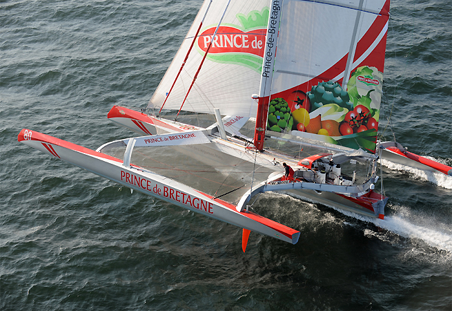 Après un peu plus de deux mois de chantier durant lesquels l’équipe de Lionel Lemonchois a notamment réparé le système de bascule de mât et modifié celui du safran de la coque centrale, le Maxi 80 Prince de Bretagne a retrouvé son élément, ce mardi à Lorient, avant d’être mâté dans la foulée. ” Tous s’est parfaitement bien déroulé. Ce mercredi matin, nous avons remis les voiles en place et, d’ici à la fin de la semaine, nous reconnecterons tout ce qui doit l’être puis nous installerons les trois safrans. Nous avons, par ailleurs, un gros travail d’implantation d’un nouveau système vidéo particulièrement simple d’utilisation qui permettra à Lionel d’optimiser son temps lorsqu’il sera en mer “ a indiqué Arnaud Aubry, le bras droit du skipper normand. ” Nous devrions, normalement, attaquer les premières sorties en mer dès mardi prochain. Les cinq ou six premières navigations seront réalisées en équipage réduit. Ensuite, Lionel s’entrainera en solo. »