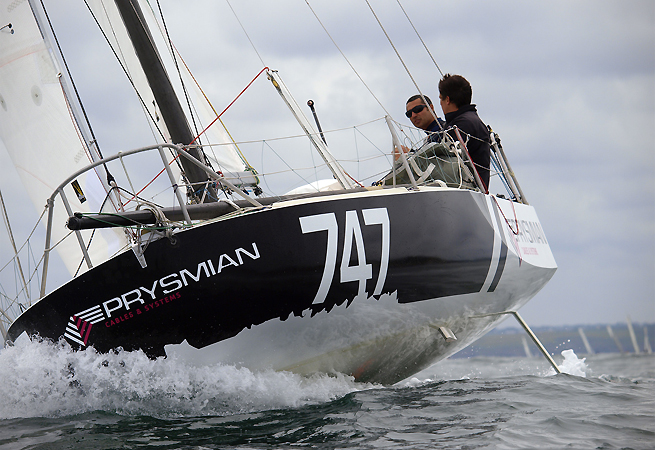 En prototypes, Giancarlo Pedote et Rémi Aubrun sur le 747 (Prysmian) dominent la flotte depuis le départ. La puissance du Magnum et ses performances désormais avérées au portant leur auront permis de creuser un peu l’écart sur leurs poursuivants avec 4 à 5 milles d’avance au passage de la PA. Tout du long de leur remontée vers Douarnenez, Giancarlo et Rémi devront cependant trouver le bon compromis entre stratégie et contrôle de leurs adversaires directs. Ces derniers, à savoir notamment Étienne Bertrand et Julien Pulvé sur « Chasseur de primes », et Antoine Rioux et Gwénolé Gahinet sur « Festival des pains », respectivement 2e et 3e, n’ont pas dit leurs derniers mots… surtout au près.