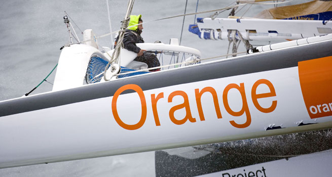 | « Le passage du front a été brutal » raconte un Stève un peu sous le choc, « Le vent est monté d’un seul coup de plus de 10 nœuds, passant à plus de 20 en quelques secondes. Le trimaran s’est levé et j’ai dû choquer en grand. Heureusement, j’avais anticipé en prenant un ris et le bateau portait bien la toile du temps. » Passée cet te petite frayeur, Stève Ravussin a pu enfin s’en donner à cœur joie après la grande frustration du départ de voir partir ses adversaires plus légers et plus à l’aise aux allures de près dans les tout petits airs anticycloniques qui régnaient en Manche. Avec les dépressions d’Atlantique Nord, Orange project trouve le carburant dont il a besoin. « Orange Project est un formidable bateau de brise » s’enthousiasme volontiers notre Suisse. « On a marché souvent à plus de 30 nœuds cette nuit et je crois que cela nous a permis e bien revenir dans le match. » Orange a en effet grappillé trois places au classement général en quelques heures seulement, passant de la 11ème à la 8ème place. Il a réintégré une flotte très étalée en latéral emmen&e acute;e par Michel Desjoyeaux quelques 88 milles devant. Il lorgne désormais avec appétit sur le tableau arrière d’Alain Gautier 8 petits milles sur sa route. |