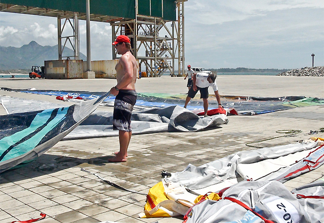 Ce jeudi à Fort Dauphin à Madagascar, l’équipe technique de Team Sanya a commencé à étudier les possibilités pour réparer le VO70. En collaboration avec le fabricant Future Fibres, ils essaient de trouver la meilleure solution pour installer le nouveau gréement. D’ici quelques jours le nouveau système de gréement devrait être transporté par avion de Valence à Madagascar, où l’équipe technique l’installera. Ensuite, il va falloir un certain nombre de jours pour effectuer des essais en mer au large des côtes malgaches. C’est seulement après cela que le bateau ralliera le port prévu pour le départ de la seconde partie de la troisième étape. En effet comme lors de la remontée vers Abu Dhabi, la course sera neutralisée et les VO70 transportés par mer vers un port gardé secret d’où ils repartiront vers la Chine. Ce qui est primordial pour Sanya est de s’assurer de la fiabilité des réparations avant de repartir et ensuite l’objectif est d’arriver en course à Sanya.