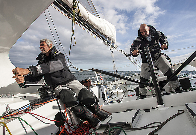 Aux côtés de Jörg Riechers, Sébastien Audigane embarque pour sa deuxième Barcelona World Race après une première expérience en 2010 avec Kito de Pavant. C’est un tandem franco-allemand au mode de fonctionnement original qui va s’aligner au départ le 31 décembre prochain. En effet, si Jörg Riechers est le chef de projet, celui qui a monté l’opération, c’est son coéquipier qui possède la plus grande expérience et qui devrait logiquement impulser la dynamique de fonctionnement à bord.