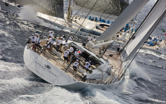 Les conditions étaient idéales hier pour la première journée de la Superyacht Regatta aux iles Vierges britanniques. 20 superyachts participent à cette épreuve organisée par le Yacht Club Costa Smeralda. La brise est restée très stable autour de 14 noeuds pour un tour de l’île de Gorda. Dans la division regroupant les voiliers de course-croisière, le Southern Wind 100 Cape Arrow a rapidement pris la tête avec le 49,7m Zefira à quelques secondes. A quelques minutes de ce duo de tête après les deux premier bords, le 45m Salperton mené par Shirley Robertson est revenu en force et au nord-est de l’île a réussi à les dépasser pour prendre la victoire dans la division A. C’est le 54m Parsifal III construit chez Perini Navi, qui a pris un départ très rapide pour mener le groupe B, mais il a été rattrapé par la goélette de 62m Athos et l’Oyster 100 Sarafin au sud de l’île. Les leaders restaient groupés jusqu’à l’arrivée, mais la victoire en temps réel en division B est revenue à Parsifal III.