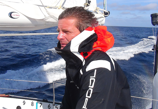 Au passage du Fastnet en tête, message de Sidney Gavignet, le skipper du MOD70 Oman Air Musandam : “La journée d’hier (lundi) nous a réservé de belles navigations, un peu sauvages, à plus de trente nœuds dans les vagues. Nous nous sommes retrouvé bord à bord avec Edmond de Rothschild, sous gennaker, à une longueur l’un de l’autre! Le reste, cette nuit, fut du placement par rapport aux bascules de vent. Les jeux ne sont pas faits… Les conditions de près ne sont pas les plus agréables, mais on ne peut se plaindre, la mer n’est pas trop mauvaise…”