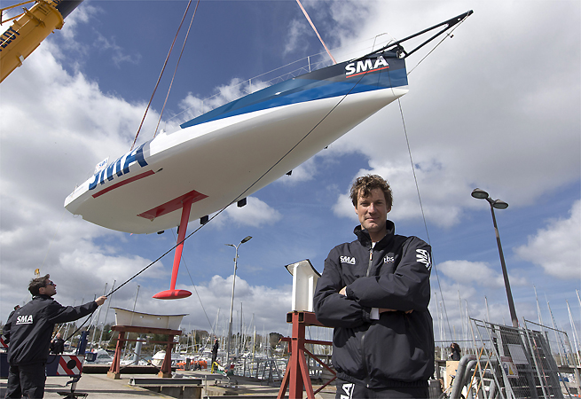 A Port-la-Forêt, on est habitué aux mises à l’eau des monocoques IMOCA. Le monocoque de Paul Meilhat a été mis à l’eau hier. A marée haute, SMA flottait, prêt à rejoindre le bassin réservé aux unités de course. Le Directeur du projet Marcus Hutchinson revient sur ce projet. « Son premier caractère et peut-être son atout majeur, c’est d’associer un skipper talentueux qui découvre le circuit IMOCA et un bateau qui fait partie de ce qui se fait de mieux dans la classe (il s’agit de l’ex-MACIF – ndlr). C’est aussi l’association d’une équipe dédiée de petite taille et d’une structure qui a fait ses preuves. On bénéficie de l’expérience indéniable de l’écurie de Michel Desjoyeaux, tout en conservant une grande souplesse de fonctionnement. Paul a beau être encore jeune, c’est quelqu’un de très mature. A charge maintenant pour moi, de l’aider à prendre la mesure du projet.»