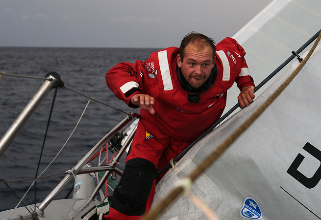 Dongfeng signale ce mercredi matin un nouveau souci avec une cadène au même endroit que celle qui s’était déjà cassée lors de la première étape du tour du monde en équipage. La performance de l’équipage est de nouveau compromise, car il ne peut pas régler efficacement son grand gennaker. Kevin Escoffier est en contact avec les équipes techniques de Dongfeng et de la Volvo Ocean Race pour tenter de trouver une solution. Charles Caudrelier précise qu’il ne veut pas risquer de casser complètement la cadène. Le gennaker est notamment utilisé au près dans un vent de 2 à 8 noeuds, ou au portant dans un vent soufflant jusqu’à 25 noeuds. L’équipe espère trouver une solution permettant à Dongfeng de rester en tête de la flotte lors de l’entrée dans le détroit de Malacca.