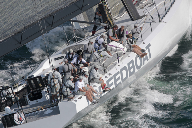 Le 100 pieds d’Alex Jackson Speedboat a franchi la ligne d’arrivée de la Newport-Bermudes ce matin à 9h49 (heure française). A 12h25, le VO70 il Mostro (Puma) skippé par Ken Read a pris la seconde place en temps réel. Cette année les conditions n’étaient pas propices à un nouveau record. Speedboat a parcouru les 635 milles du parcours en un peu plus de 59 heures. Le record appartient donc toujours à Pyewacket avec un temps de 53 heures et 39 minutes établi en 2002. La bataille continue derrière entre Ran, Titan, Beau Geste, Genuine Risk et Rambler, qui progressent lentement vers l’arrivée. Ils se trouvaient groupés dans un rayon de 5 milles à une vingtaine de milles de la ligne au moment où Speedboat remportait la course en temps réel.