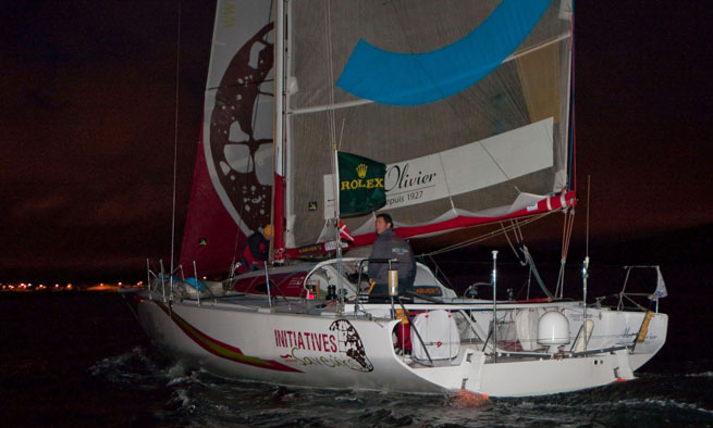 Après avoir remporté l’an passé la Rolex Fastnet Race et la Solidaire du Chocolat, Tanguy de Lamotte attaque cette année la dernière ligne droite de sa préparation, pour réaliser l’objectif qu’il vise depuis quatre ans déjà : la Route du Rhum – la Banque Postale 2010. « J’ai conçu et construit mon 40 pieds pour participer à cette épreuve mythique. Depuis tout petit je n’ai pas manqué un seul départ à St Malo. C’est un rêve de gamin que je vais enfin pouvoir concrétiser. J’ai souhaité avoir mon bateau le plus tôt possible pour accumuler un maximum de milles et de régates afin de l’optimiser et de le connaître sur le bout des doigts. L’objectif aujourd’hui n’étant plus seulement d’y participer! » Au vu des succès de son Novedia-Initiatives durant ces deux dernières années (Vainqueur du mondial Class 40 et de la Marblehead – Halifax en 2008…), Tanguy fera partie des valeurs sûres de la catégorie. Il vient de valider sa qualification de 1000 milles obligatoire. Parti jeudi dernier de Sao Miguel, aux Açores, ila rallié le port de Lorient en 5 jours, à 10 noeuds de moyenne.« Je suis heureux d’avoir réalisé ma qualification dans ces conditions musclées. Le vent n’est pas descendu en dessous de 25 nœuds, avec une montée en puissance dans les dernières 24 heures et pour finir une pointe à 48 nœuds au passage de Groix… L’arrivée était fabuleuse, sur une mer d’un vert émeraude, j’ai réalisé mon dernier empannage dans 35 nœuds de vent… un vrai entrainement de gros temps ! C’est une bonne chose de faite et cela va me permettre de bénéficier de 7 mois pour améliorer le bateau en configuration solitaire."