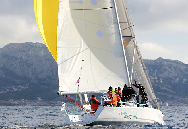 Dimanche 11 novembre dès huit heures du matin l’activité avait repris à Marseille où se disputait la dernière journée de la Finale des Championnats IRC de l’UNCL. La flotte partait à 9h35 sur un petit parcours “touristique” autour du Frioul avec un long bord de près. Très bon départ des deux leaders, Team Vision Future et Batistyl qui perdront le commandement suite à une bascule en fin de près qui tourne au bénéfice de Sayann Madraco. Mais la course est loin d’être terminée et pendant plus de 2h30 les bateaux vont batailler dans des vents instables faibles voire nuls de temps en temps avec une houle résiduelle difficile à gérer sous ces conditions. En fin de parcours après les Canoubiers, la flotte se scinde selon deux options qui ne seront pas décisives pour le podium. Team Vision Future, leader de l’option à terre, l’emporte devant Beelzebuth resté au large puis Batistyl toujours aux avant postes, suivi de notre vainqueur 2011 Léonardo qui veut faire oublier ses deux premières mauvaises manches. Les résultats sont serrés et malgré les conditions très instables les bateaux terminent en moins de 10 minutes après 2h33 de courses pour le premier.
