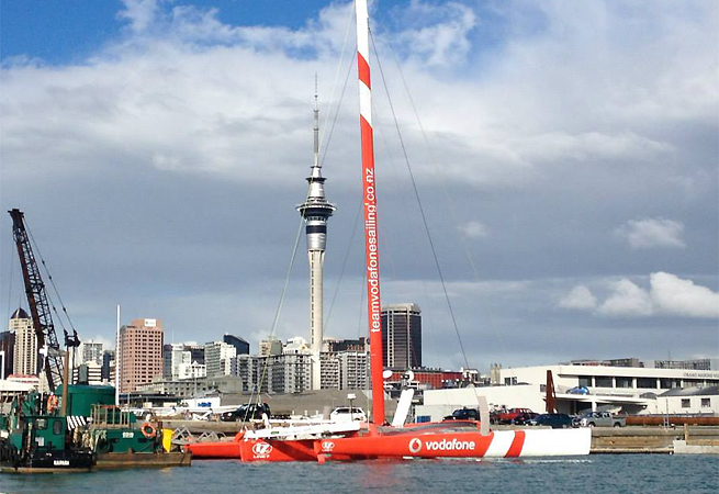 Suite à son démâtage en mars dernier, TeamVodafoneSailing (ex-Géant) est resté longtemps au chantier, mais vient d’être remis à l’eau afin de participer à la course entre Auckland et Fidji, dont le départ sera donné samedi prochain. L’équipe attend toujours l’arrivée d’un étai avant de pouvoir hisser les voiles, ce qui signifie que le temps sera très limité avant de rallier la ligne de départ. Un anticyclone situé au nord de la Nouvelle-Zélande pourrait compliquer cette édition de la course et selon les dernières prévisions la première partie de ce parcours de 1150 milles devait être assez pénible acec une remontée très lente en perspective.