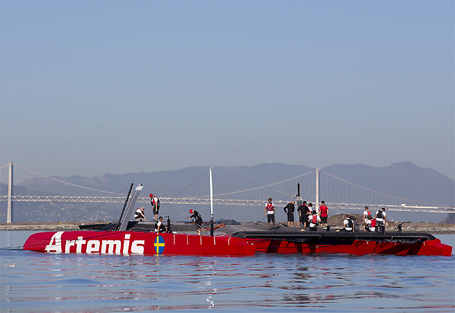 Le skipper d’Artemis Racing, Terry Hutchinson avoue que l’incident qui a engendré le rapport du baptême de son AC72 était la conséquence d’une erreur humaine. Lors du remorquage de la plateforme l’équipe a entendu des bruits suspects et a dû rentrer à sa base technique la semaine dernière. Hutchinson explique que les charges étaient mal réparties avec les foils en place et sans l’aile. « C’est assez compliqué, mais on n’aurait pas dû faire cela. Les appendices étaient en place et à certaines vitesses il faut s’assurer de l’équilibre des contraintes. Et justement on n’a pas fait cela, car l’aile était absente. Cela confirme qu’il faut être méticuleux tout le temps ». Le remorquage se déroulait à une vitesse de 15 noeuds selon le skipper, qui ne précise pas l’étendue des dégâts qui en résultaient, mais ajoute qu’il espère effectuer une première sortie à bord de l’AC72 dès la semaine prochaine.