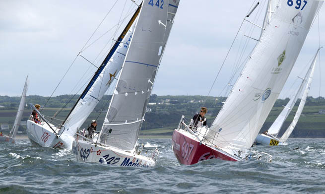65 solitaires dont 25 PROTO et 40 SERIE sont partis pour 210 milles afin de virer les Birvideaux, entre Belle-Ile et Groix. Une mise en jambes pour la plupart des skippers qui participeront au prochain Mini Fastnet (du 15 au 21 juin, prologue le 14 juin). Les bateaux ont bien « tricoté » pour virer la bouée de dégagement ! Ils descendent très vite et après avoir laissé La Plate à bâbord, Le Chat à tribord, ils continueront leur route vers Men-Hir, Cap Caval, Spineg, Basse Perennes, la route des Glénan, l’île de Groix et ses dangers à tribord. Ils contourneront les Birvideaux au large de Quiberon et remonteront vers la Chaussée de Sein, la Basse du Lis, Basse Vieille pour rejoindre les pontons de Tréboul vendredi ou samedi.