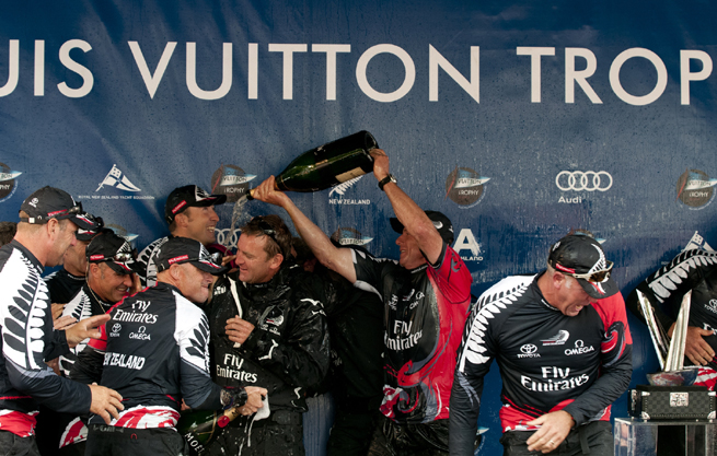 La télévision néo-zélandaise annonce aujourd’hui que suite à sa victoire dans le Louis Vuitton Trophy face à Mascalzone Latino hier, Emirates Team New Zealand va pouvoir se concentrer sur la Coupe de l’America. Grant Dalton a confirmé que l’équipe vient de recevoir un soutien important d’un groupe de partenaires privés. Il s’agit d’un financement de « millions de dollars néo-zélandais », qui devrait permettre à Dalton de consolider son équipe et éviter les transferts vers d’autres syndicats. Ces partenaires veulent garder l’anonymat, mais le patron d’Emirates Team New Zealand précise qu’il s’agit de personnes, qui travaillaient depuis un certain temps dans l’ombre.