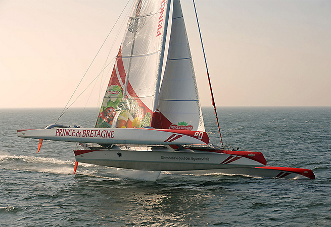 Lionel Lemonchois a confié le dessin des voiles de son Maxi80 Prince de Bretagne à Christophe Cudennec, maître voilier chez Incidences à Brest. Six pièces, dont une grand voile de 179 m2 et cinq voiles d’avant composent la première garde robe de Prince de Bretagne. “Pour l’heure, il s’agit d’un premier jeu de voiles plutôt classique et assez standard, qui a pour vocation d’accompagner Lionel dans la mise au point de ce nouveau prototype et les premières courses inscrites à son calendrier avant d’envisager de le faire évoluer pour s’adapter à son programme au fil des saisons“, explique le dessinateur.