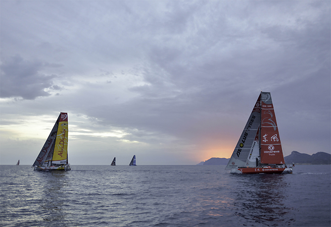 Ce dimanche matin, la flotte de la Volvo Ocean Race reste groupée au large d’Almeria. Team Vestas Wind mené par Chris Nicholson qui avait mal démarré la course hier après-midi en volant le départ, est désormais en tête, tandis que Team Brunel (Bouwe Bekking) qui a été en tête lors du parcours côtier en baie d’Alicante, se trouve à l’arrière de la flotte avec Dongfeng. Cependant, les écarts restent infimes avec seulement cinq milles entre le leader et l’équipage franco-chinois. Selon les derniers fichiers, les VOR65 évoluent désormais au près dans un vent d’ouest-nord-ouest d’environ 18 noeuds. Un régime qui devrait se maintenir en place jusqu’à la délicate sortie du détroit de Gibraltar où le vent devrait faiblir.