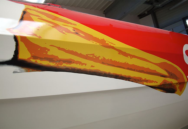 Alors qu’il y a quelques années, Thomas Coville et Sodebo avaient choisi le symbole de la Statue de la Liberté et l’art du graffiti qui figuraient l’un et l’autre en bonne place sur la grand’ voile et les coques du trimaran, le Grand Sud a, cette fois, influencé la nouvelle création. Réalisée par Jean-Baptiste Epron, la nouvelle déco du trimaran va de nouveau surprendre. « L’albatros est une idée de Tom qui y voit le symbole des mers du Sud et de l’univers que nous rencontrons là-bas et nulle part ailleurs, » raconte Jean-Baptiste Epron. «Les partis pris retenus mettent en valeur les formes uniques de ce bateau. J’ai utilisé les courbes qui ont guidé le positionnement des éléments, en l’occurrence les ailes, le bec et l’œil de l’oiseau. »