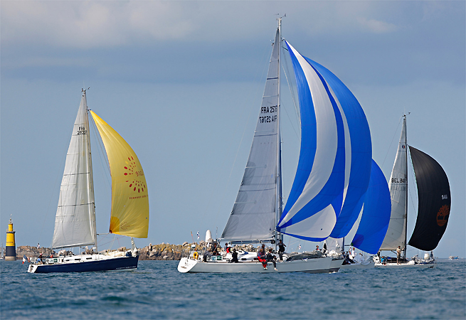 Les 100 bateaux du Tour du Finistère à la Voile ont pris le départ de la première étape à Roscoff en fin de matinée hier. Une manche qui a commencé doucement dans une petite dizaine de nœuds de vent, et n’a pas tardé forcir en début d’après-midi. Portés par le courant, les navires ont rejoint le port de l’Aber Wrac’h ensoleillé à partir de 17h. Les concurrents ont parcouru les 35 milles de l’étape essentiellement au près. D’abord faible, le vent a vite forci et offert aux participants de beaux bords de près avec une spectaculaire fin de parcours sous spi. Déjà groupée au pointage de Toul Coz, la flotte est restée relativement compacte jusqu’à l’arrivée dans le chenal du port de l’Aber Wrac’h : 90% des bateaux ont passé la ligne en moins d’une heure.