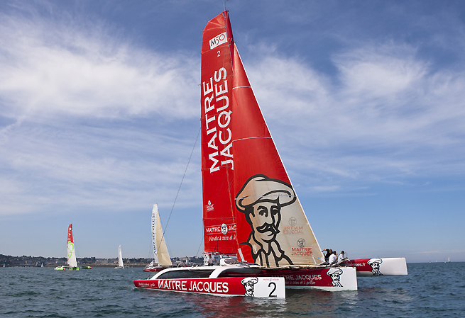 Loïc Féquet vient d’annoncer son programme sportif 2013, avec en points d’orgue la Transat Jacques Vabre à destination du Brésil et la Route des Princes entre Valence et Morlaix via le Portugal, l’Irlande et l’Angleterre. Loïc Escoffier reste le fidèle complice du skipper Maître Jacques pour la Transat en double. Cet automne, il y aura un double baptême pour les deux Loïc avec leur premier « Pot au Noir » et leur bizutage à l’occasion du fameux passage de l’Équateur… Le jeu sportif promet des bagarres toujours plus pimentées avec l’arrivée d’un nouveau Multi 50, skippé par Lalou Roucayrol. Ils seront désormais cinq équipages à jouer des flotteurs pour les places d’honneur sur les bateaux les plus récents de la flotte. Mais avant d’entrer dans le vif du sujet, le trimaran Maître Jacques fait aujourd’hui peau neuve, dans son chantier, à Saint-Malo : nouvelle peinture, nouvelle décoration et nouvelles étraves… La mise à l’eau est programmée d’ici deux mois.