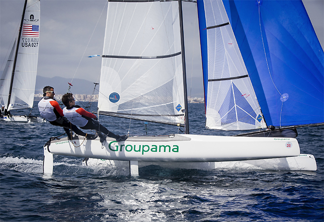 Le championnat du monde de Nacra 17 est le point d’orgue de la saison olympique 2015 pour Franck Cammas et Sophie de Turckheim. Arrivés à Aarhus au Danemark il y a sept jours, le duo Groupama va affronter le gratin de la série à un an des Jeux de Rio. Engagé pour la troisième année dans cette préparation olympique avec sa coéquipière Sophie de Turckheim, le skipper Groupama ne cesse de progresser pour intégrer régulièrement le groupe des dix meilleurs mondiaux. Ce ne sera pas suffisant s’il ne parvient pas à devancer les leaders de la série, doubles champions du monde en titre : les Français Besson et Riou.Dominateurs de la série, toujours très rapides sur l’eau, ils n’ont montré que peu de points faibles depuis trois ans : « On a couru une régate d’entraînement dans la brise cette semaine. Besson allait vraiment bien » relate Franck Cammas.