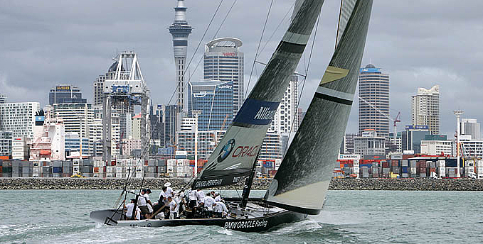 Voici la première image du nouvel ACC de BMW Oracle, USA98, lors de sa sortie inaugurale à Auckland… Les premières impressions de l’équipage devraient nous parvenir sous peu.